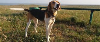 The piebald hound dog is not common abroad and is not recognized by foreign canine systems. It is worth noting that such animals love to “talk”, so you will have to get used to empty barking. During a hunt, a pet is able to simply “turn off” its hearing and follow the scent for a long time, as a result, it may not even hear that its owner is calling him.