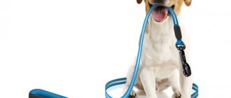 - Canvas leash. The optimal length is 3-5 cm. Short models are used for teaching the “Near” command, long models are used for special training.