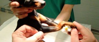 It is during this period that a very common problem, especially for large breed puppies, is weakness of the ligamentous apparatus. As a rule, the first manifestations are noted after 4 months. The earliest signs may be the so-called “sunken pasterns.” The reasons may be excess weight, poor nutrition, lack of adequate physical activity, slippery flooring, as well as congenital predisposition.