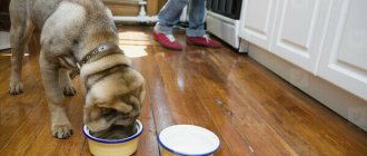 Если щенок не съедает предлагаемый корм за 1 раз, объем порции необходимо немного уменьшить.