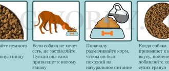 - Резкая смена привычного рациона. Это касается как замены одного сухого корма на другой (в старый следует подмешивать некоторое количество гранул нового продукта), так и перехода с одного типа питания на другой (например, с натурального на сухой).