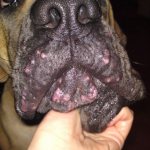 - Морда глубокая, сужающаяся, но не заостренная. Мочка носа черная, широкая. Ноздри открытые. Плотно прилегающие к зубам губы тонкие не отвисают.