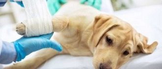 - сильная боль при движении, собака может поскуливать и облокачиваться больше