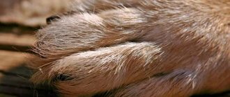 - Внимательно осмотреть область, которую лижет собака (подушечки, шерсть на сгибе конечности, пальцы).
